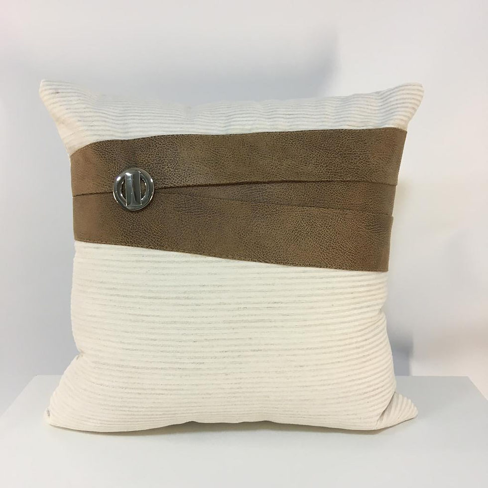 Almofada suede off white com tiras de 2 cm de couro legitimo. Tamanhos e cores variados.